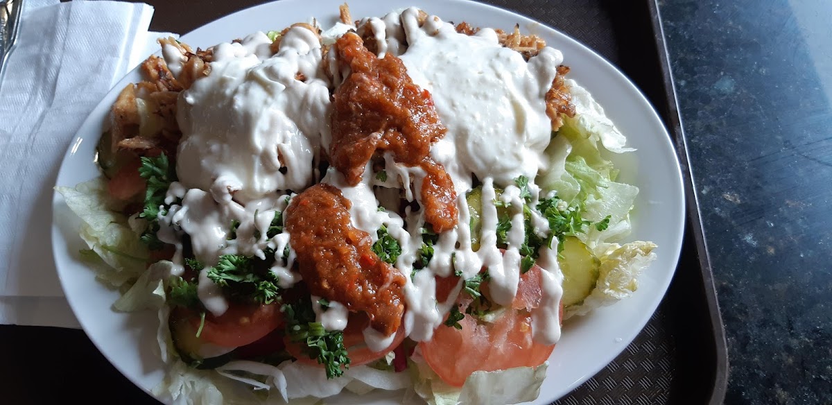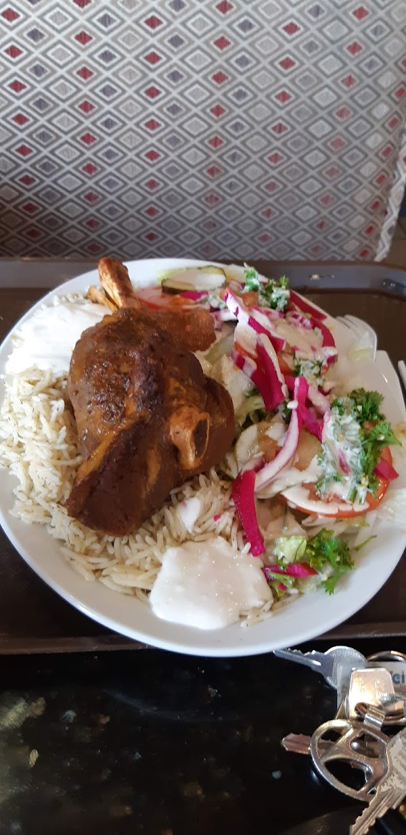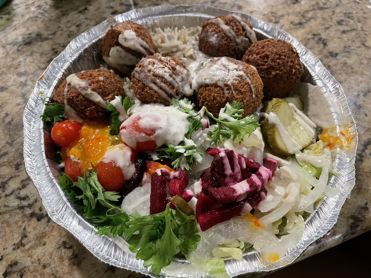The menu centers around classic shawarma plates and sandwiches, with standout items such as the Chicken Shawarma Plate and Mixed Shawarma Plate offering generous portions paired with rice, salad, and sauces that lean toward authentic street food flavors. For those who prefer vegetarian options, the Falafel Plate and Falafel Sandwich provide a solid choice without compromising on freshness or taste. The Lamb Shank Dinner Plate adds a heartier, more traditional touch when you’re in the mood for something richer.